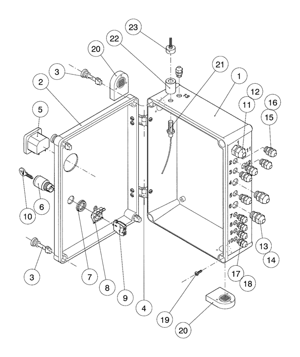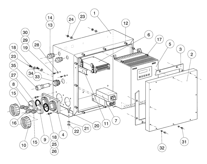 Explosionszeichnung: Reglergehäuse