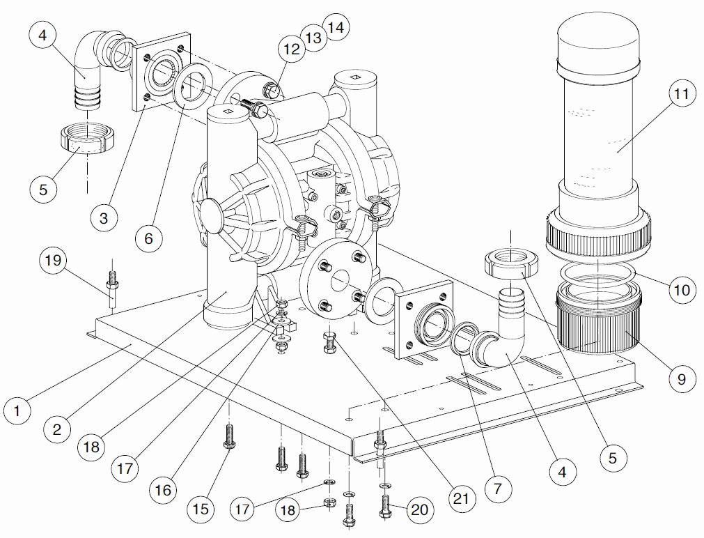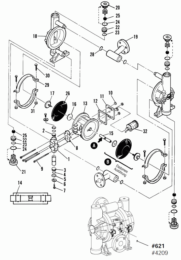 Explosionszeichnung: Einbau Membranpumpe